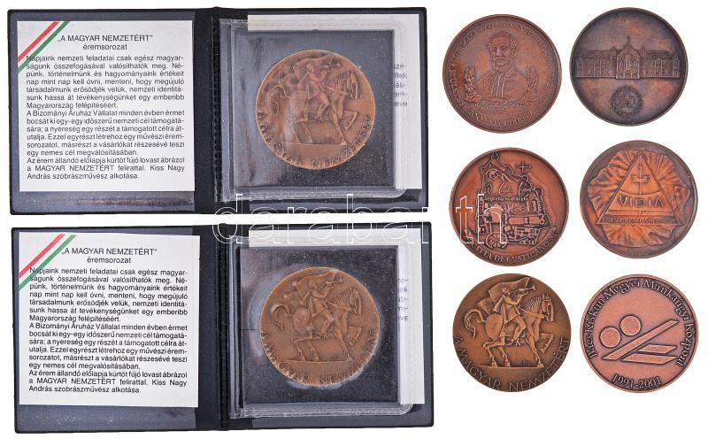 8db Br emlékérem, kettő eredeti tokjában, közte Kiss Nagy András (1930-) 1973. "Magyar Nemzetért / Erdély" Br emlékérem (42mm) tokban, Lapis András (1942-) DN "Kecskemét" Br emlékérem (42,5mm) T:1,2,2-