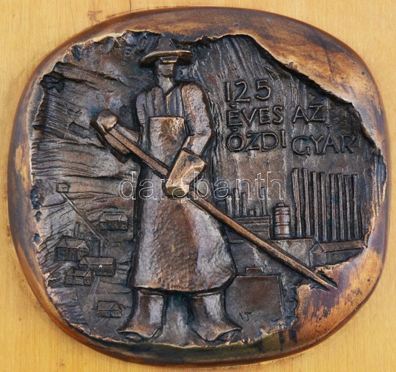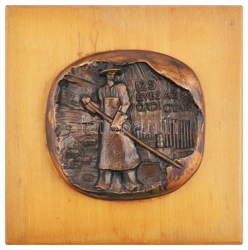 Leírás: Asszonyi Tamás (1942-) 1970. "125 éves az ózdi gyár" Br plakett fatalpon (~122x130mm) T:2