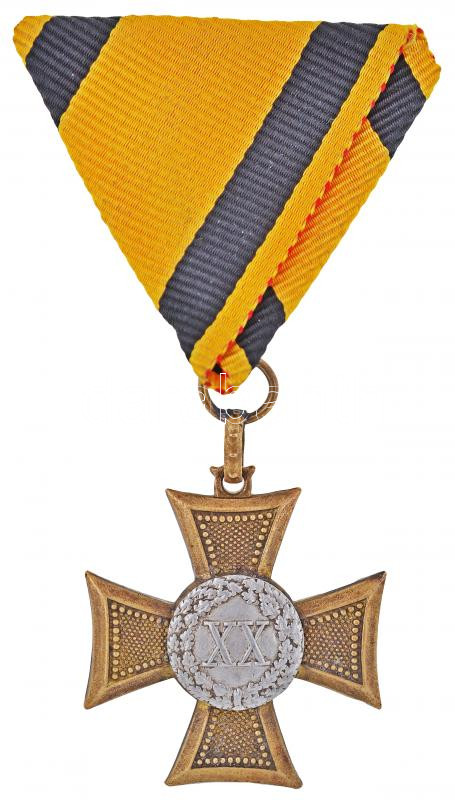 Hungary 1913-1918. "Distinction for 20 Years of Military Service for the Soldiers, 1st Class" Br dinstinction with ribbon C:XF the ear and the ring of the ribbon are soldered together