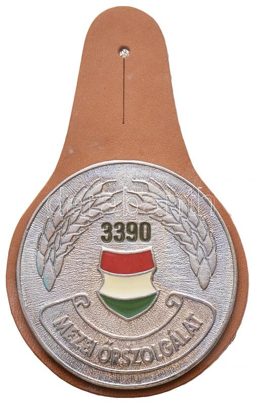 Leírás: DN "Mezei Őrszolgálat" ezüstözött, zománcozott fém jelvény bőrön T:1,1-