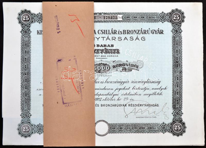 Budapest 1923. "Kissling Rudolf és Fia Csillár és Bronzárugyár Részvén... https://www.darabanth.com/hu/229-Gyorsarveres/229.0/Numizmatika/Reszvenyek-es-sorsjegyek~52/Budapest-1923-Kissling-Rudolf-es-Fia-Csillar-es-Bronzarugyar-Reszvenytarsasag-reszveny~II1022315