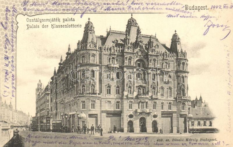 Leírás: Budapest V. Osztálysorsjáték Palota, Richter Károly üzlete, Divald Károly