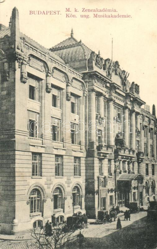 Budapest VI. Magyar királyi Zeneakadémia (EK) https://www.darabanth.com/hu/23-Nagyaukcio/23.1/Magyar-kepeslapok/Magyarorszag~9033/Budapest-VI-Magyar-kiralyi-Zeneakademia-EK~II1205845