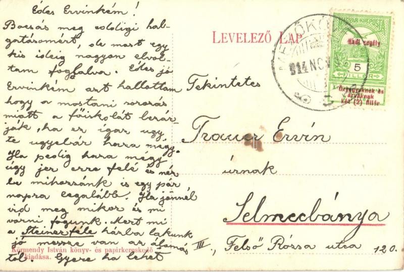 Leírás: Mezőkövesd, Fő utca, Kardos Sándor fűszeráruháza; kiadja Körmendy István könyv- és papírkereskedő (EK)