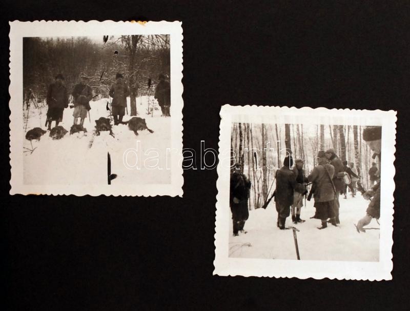Leírás: 1929-37 Vitéz B.L. vadászemlékei fotóalbum 38db feliratozott fotóval, cca 9x11cm