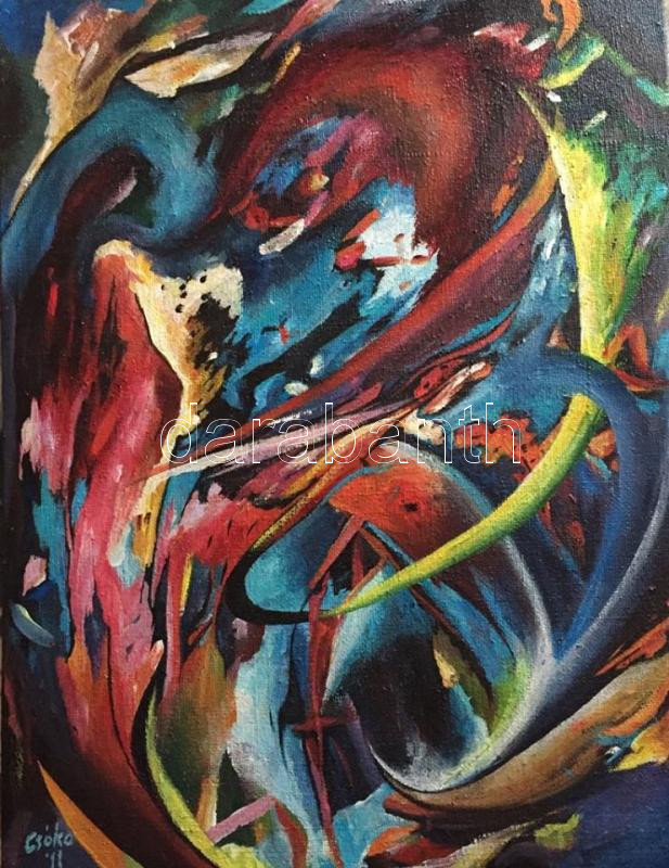 Leírás: Csóka László (1967-): Másnap. Akril, vászon, jelezve jobbra középen lent: Csóka 11. Kiállítva: Beregszász, Munkács, Kalus, Kiev, Lemberg, Csernovic, egyéni kiállítás, 2015-2017. 90x70 cm.