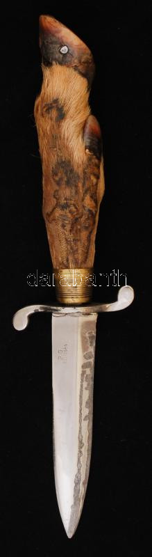 Leírás: Őzláb markolatú Solingen vadászkés, a penge kicsit sérült, jelzett, pengehossz: 9,5 cm, teljes hossz: 21,5 cm