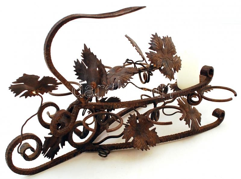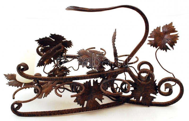 Leírás: Szőlőindás-motívumos fém pohártartó 6 db pohárral + gyertyatartóval, 39×18,5×21 cm