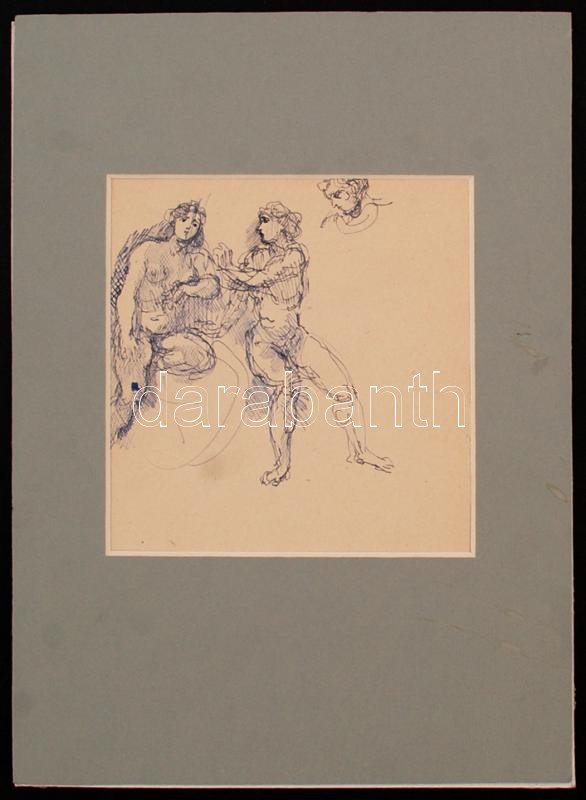 Leírás: Herman Lipót (1884-1972): Vázlat rajz. Ceruza, papír, hagyatéki pecséttel, paszpartuban, 15×21 cm