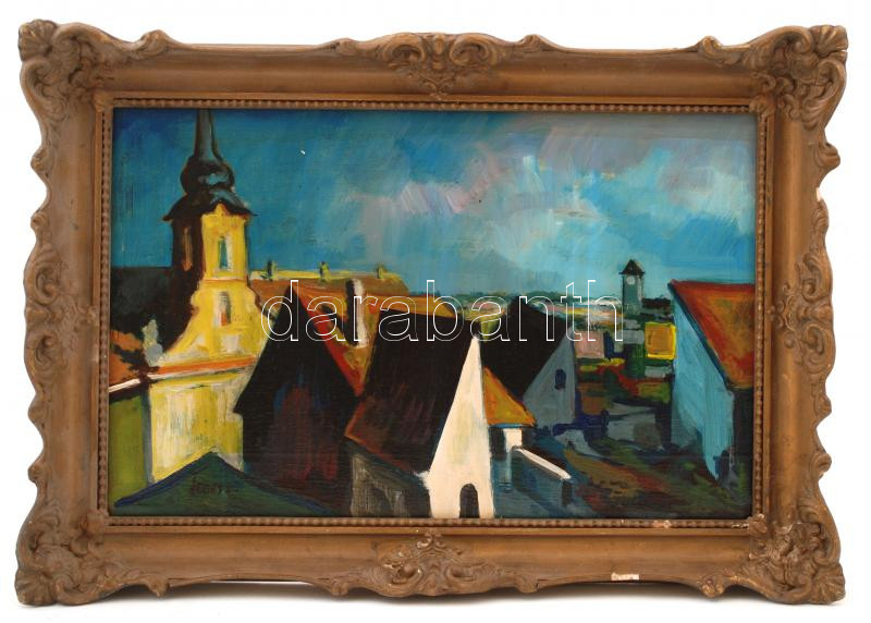 Leírás: Jeges jelzéssel: Szentendre, olaj, fa, keretben, 24×38 cm