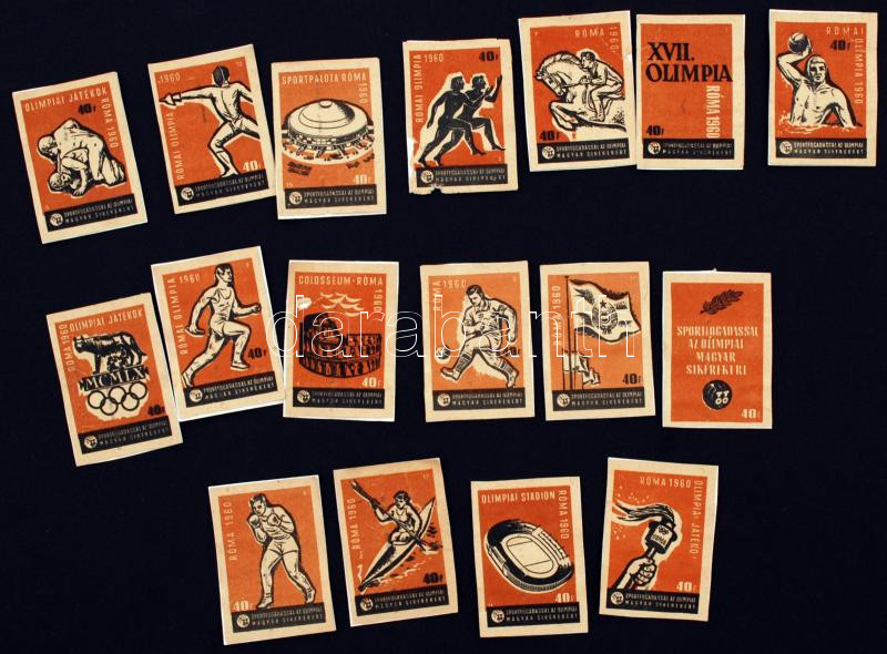 1960 A római olimpiával kapcsolatos gyufacímkék kartonra ragasztva, 17... https://www.darabanth.com/hu/230-Gyorsarveres/230.0/Festmeny-mutargy-papirregiseg-egyeb/Gyufacimke~200039/1960-A-romai-olimpiaval-kapcsolatos-gyufacimkek-kartonra-ragasztva-17-db~II1033368