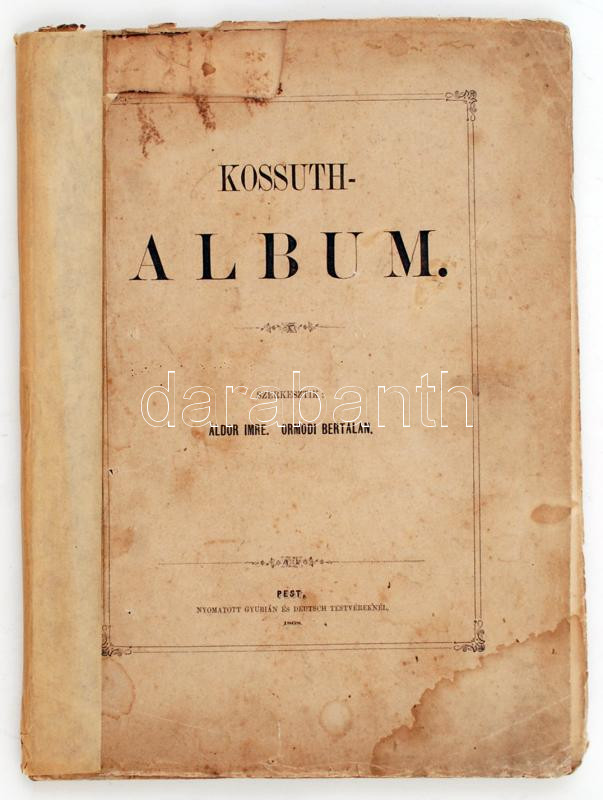 Áldor Imre, Ormodi Bertalan (szerk.): Kossuth-album. Pest, 1868, Gyuri... https://www.darabanth.com/hu/230-Gyorsarveres/230.0/Festmeny-mutargy-papirregiseg-egyeb/Konyvek-Tortenelem~200011/Aldor-Imre-Ormodi-Bertalan-szerk-Kossuth-album-Pest-1868-Gyurian-Deutsch-Javitott-hia~II1038211