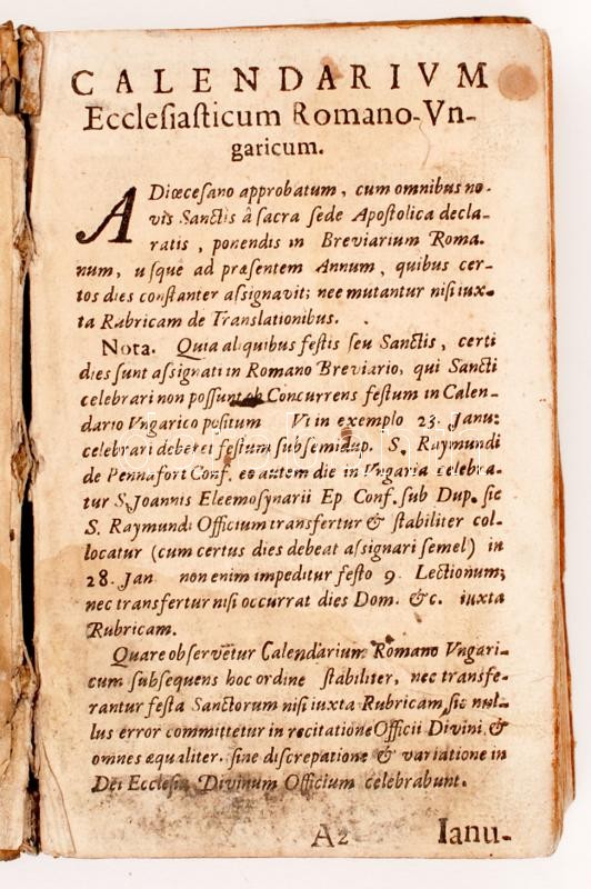 cca 1670 Calendarium aecclesiasticum Romano-Ungaricum. Hiányzik az els... https://www.darabanth.com/hu/230-Gyorsarveres/230.0/Festmeny-mutargy-papirregiseg-egyeb/Konyvek-Vallas~200023/cca-1670-Calendarium-aecclesiasticum-Romano-Ungaricum-Hianyzik-az-elso-par-oldal-Egeszbor-ko~II1037211