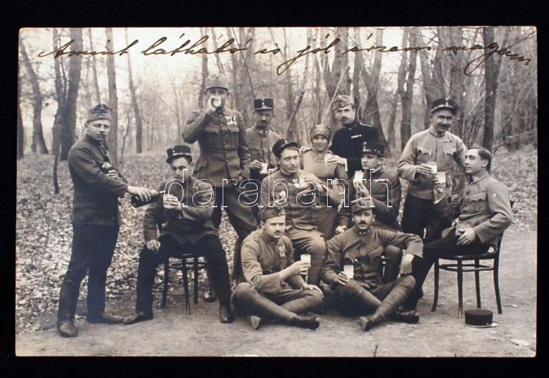 cca 1865 Brünnben szolgáló magyar huszárok más katonai egyenruhákat viselő katonatársakkal, keményhátú, vizitkártya méretű fénykép Quido Trapp brünni műterméből, 6x10 cm