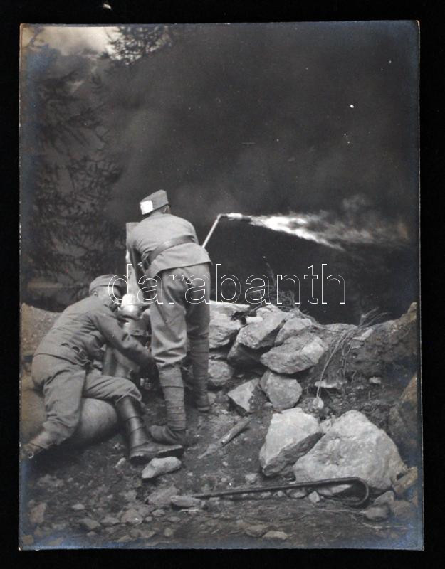 cca 1914-1918 Lángszóróval a tűzvonalban, katonai fénykép, 10,5x8 cm /... https://www.darabanth.com/hu/230-Gyorsarveres/230.0/Festmeny-mutargy-papirregiseg-egyeb/Militaria~200002/cca-1914-1918-Langszoroval-a-tuzvonalban-katonai-fenykep-10-5x8-cm--3Cbr3Ecca-1914-1918-Flam~II1029033