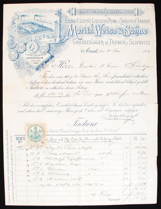 1894 Arad likőrgyár számla / Arad alcohol factory invoice https://www.darabanth.com/hu/230-Gyorsarveres/230.0/Festmeny-mutargy-papirregiseg-egyeb/Okmanyok~200030/1894-Arad-likorgyar-szamla-Arad-alcohol-factory-invoice~II975393