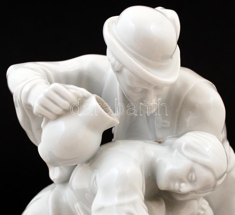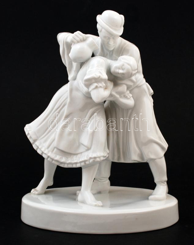 Leírás: Herendi Locsolkodás, fehér mázas, jelzett, hibátlan, m: 26 cm