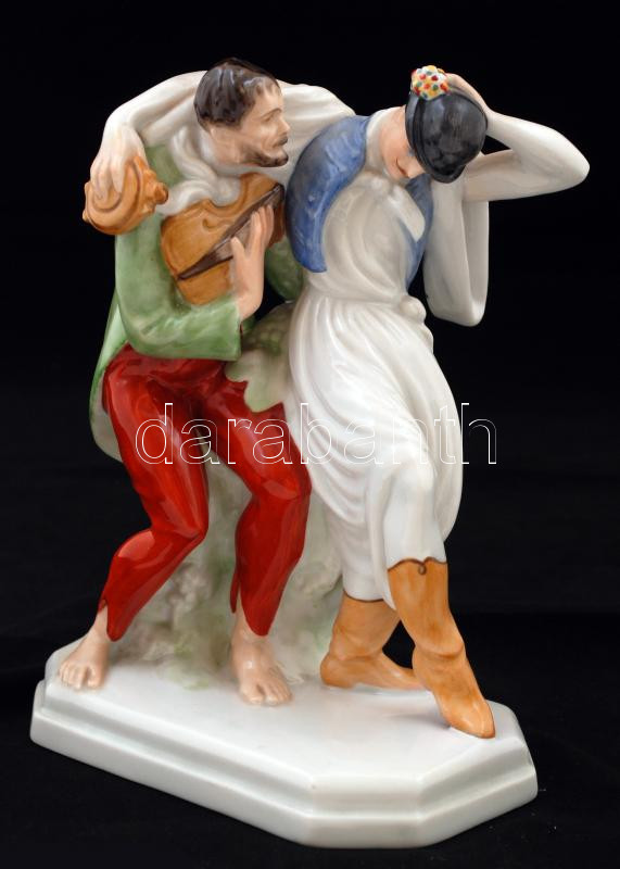 Leírás: Herendi mulatozók, kézzel festett, jelzett (Lux Elek), hibátlan, m:21,5 cm