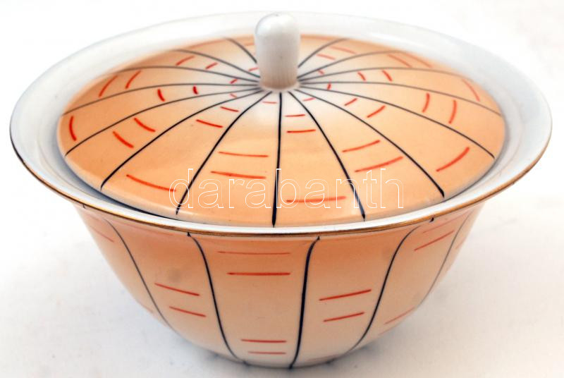 Leírás: Hollóházi bonbonier, kézzel festett, jelzett, m:10 cm, d:14,5 cm