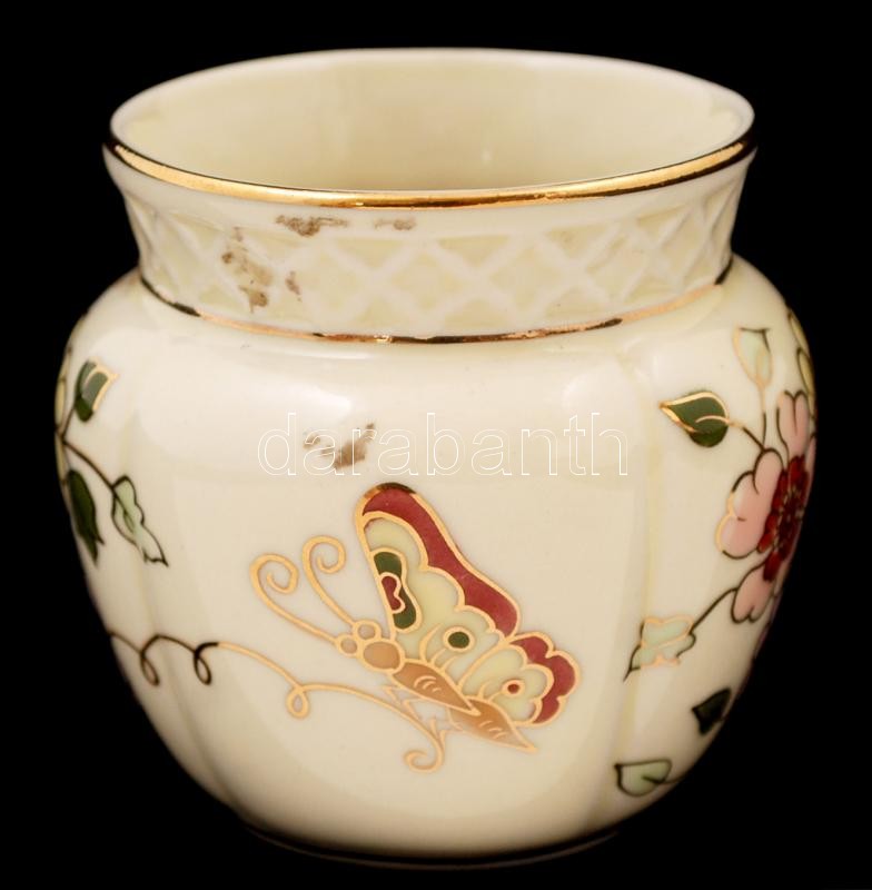 Leírás: Zsolnay pillangó mintás mini kaspó, kézzel festett, jelzett, hibátlan, m:6,5 cm