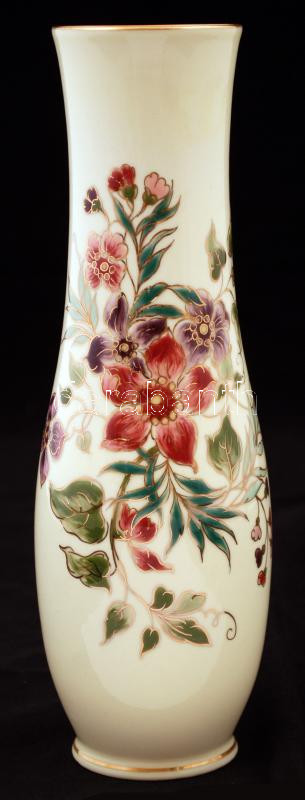 Leírás: Zsolnay virág mintás váza, kézzel festett, jelzett, hibátlan, m:25,5 cm