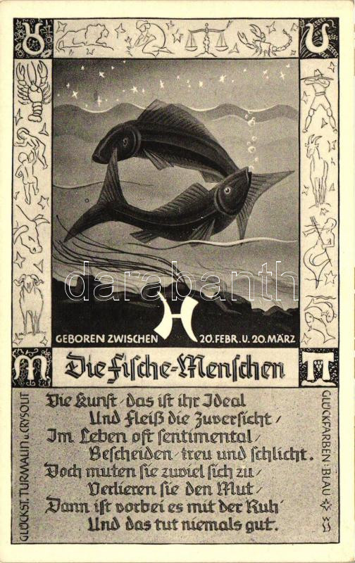 Die fische-Menschen / Pisces, horoscope postcard https://www.darabanth.com/hu/230-Gyorsarveres/230.0/Kepeslapok/Egyeb~60/Die-fische-Menschen-Pisces-horoscope-postcard~II1031759