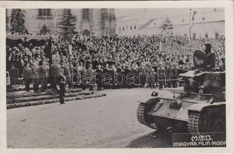 Leírás: 1940 Kolozsvár, bevonulás, Horthy Miklós, tank / entry of the Hungarian troops, Horthy, tank 'vissza' So. Stpl