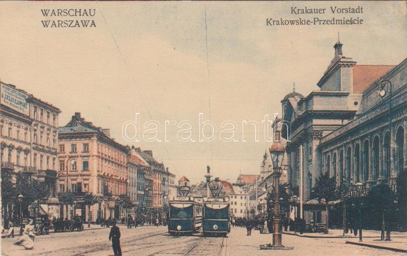 Warsaw, Warszawa; Krakauer Vorstadt / street, trams (gluemark) https://www.darabanth.com/hu/230-Gyorsarveres/230.0/Kepeslapok/Lengyelorszag~101/Warsaw-Warszawa-Krakauer-Vorstadt-street-trams-gluemark~II1030165