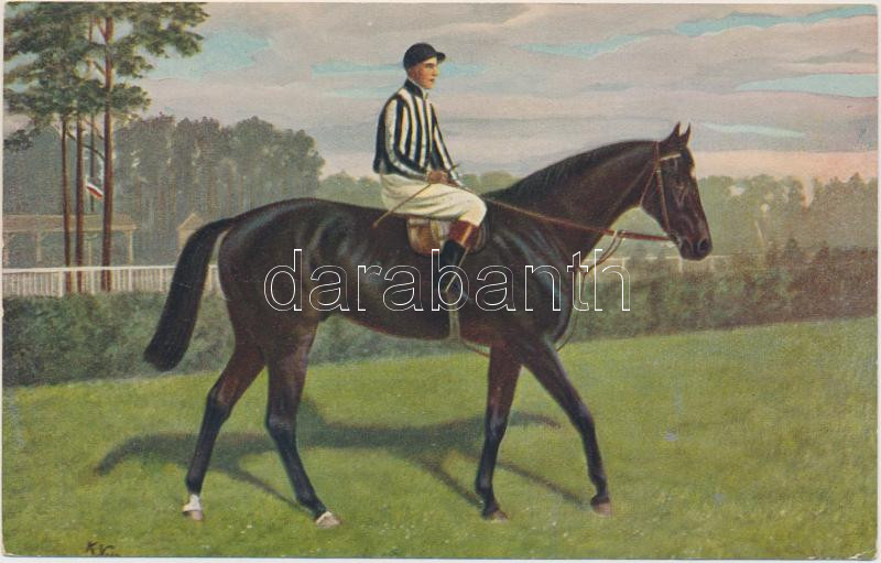 Leírás: Jockeys und Rennpferde: Favorit / Jockey and Favorit racehorse, Koria Kunstkarte Serie 331/1-6 Nr. 331/4. s: K. Volkers (EK)