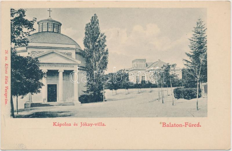 Balatonfüred, Kápolna, Jókay villa, Köves Béla 28. sz. https://www.darabanth.com/hu/230-Gyorsarveres/230.0/Kepeslapok/Magyarorszag~4/Balatonfured-Kapolna-Jokay-villa-Koves-Bela-28-sz~II1030975