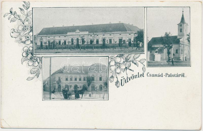 Leírás: Csanádpalota, templom, Községház, floral (EK)