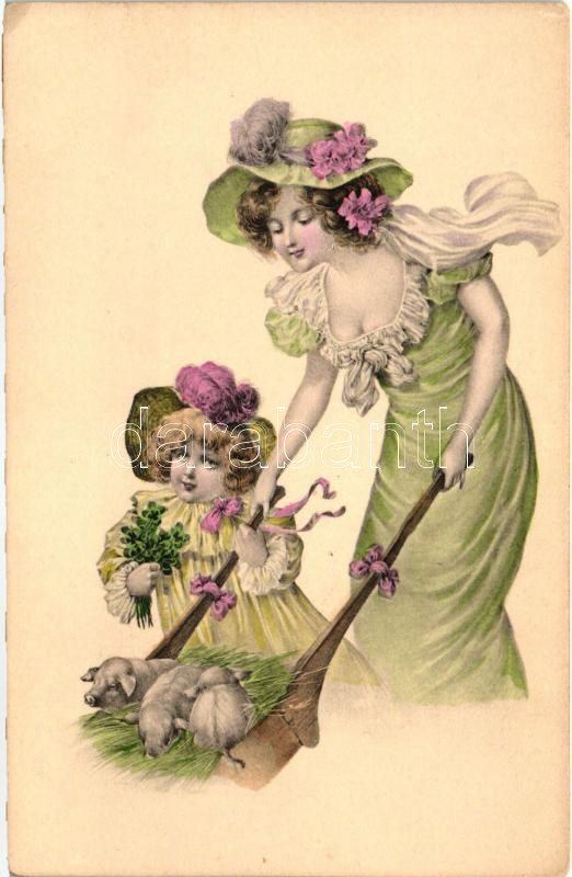 Lady, girl, pigs, clover (fl) https://www.darabanth.com/hu/230-Gyorsarveres/230.0/Kepeslapok/Muvesz~30/Lady-girl-pigs-clover-fl~II1030880