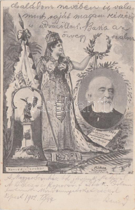1902 Kossuth Lajos születésének 100. évfordulójára, emléklap, Blaha Lu... https://www.darabanth.com/hu/230-Gyorsarveres/230.0/Kepeslapok/Uralkodo-Politikus~94/1902-Kossuth-Lajos-szuletesenek-100-evfordulojara-emleklap-Blaha-Lujza-Honved-szobor-1~II1036700