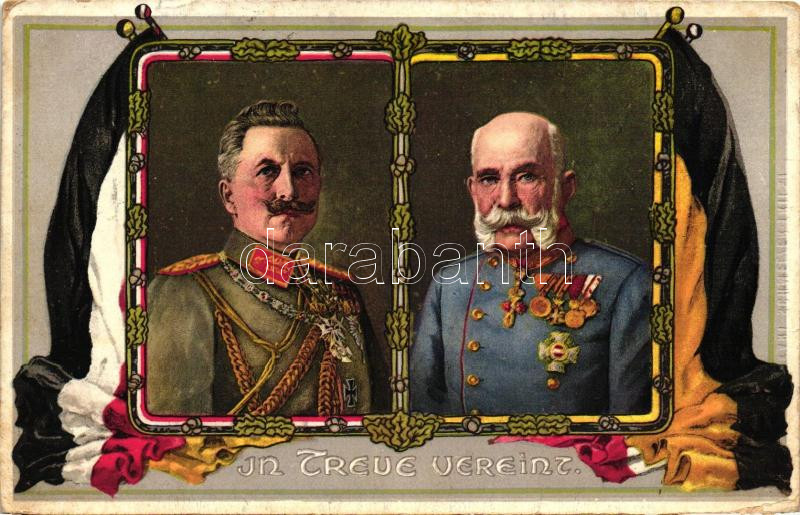 In Treue Vereint / Wilhelm II, Franz Joseph, flags (EK) https://www.darabanth.com/hu/230-Gyorsarveres/230.0/Kepeslapok/Uralkodo-Politikus~94/In-Treue-Vereint-Wilhelm-II-Franz-Joseph-flags-EK~II1029199