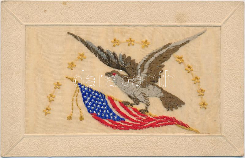 American flag, bird, embroidered postcard https://www.darabanth.com/hu/230-Gyorsarveres/230.0/Kepeslapok/Zaszlo-Cimer~114/American-flag-bird-embroidered-postcard~II1037740