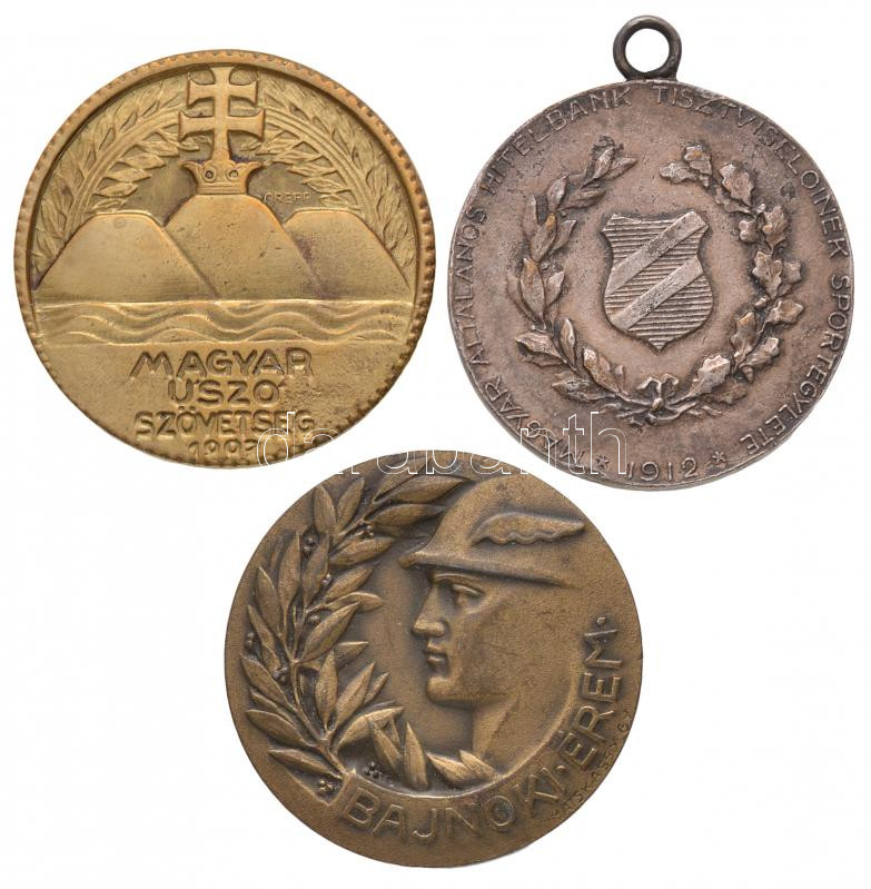 Leírás: 3db klf sportérem, közte Göröntsér Greff Lajos (1888-1976) ~1940. "Magyar Úszó Szövetség 1907." Br sportérem (40mm) T:2-
