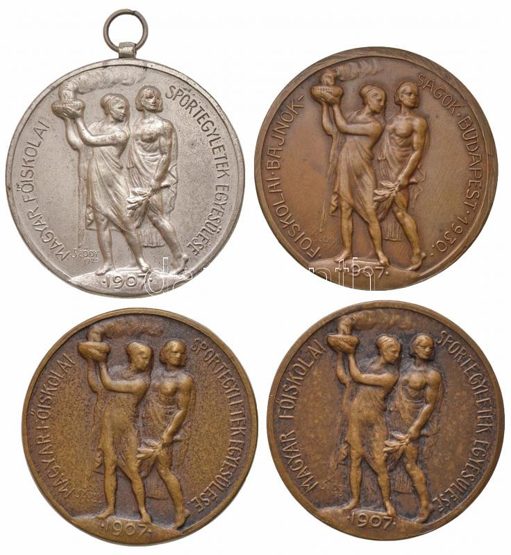 Leírás: Sződy Szilárd (1878-1939) ~1930. "Magyar Főiskolai Sportegyletek Egyesülése" (3x) + "Főiskolai Bajnokságok Budapest" Br díjérmek, egyik ezüstözve és füllel (40-41mm) T:2