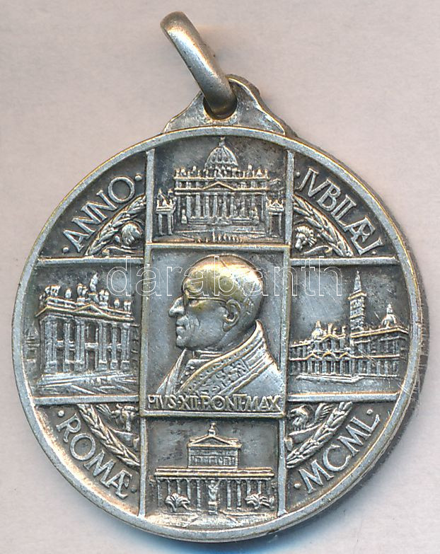 Vatikán 1950. "XII. Pius - Jubielumi év" ezüstözött fém medál (25mm) T... https://www.darabanth.com/hu/230-Gyorsarveres/230.0/Numizmatika/Falerisztika-Kituntetesek-jelvenyek~400017/Vatikan-1950-XII-Pius--Jubielumi-ev-ezustozott-fem-medal-25mm-T2-3Cbr3EVatican-1950-~II1013619
