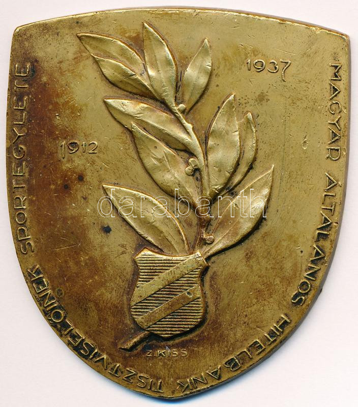 Leírás: Zombori Kiss István (1902-1953) 1937. "Magyar Általános Hitelbank Tisztviselőinek Sportegylete 1912-1937" Br plakett, "LUDVIG" gyártói jelzéssel (70x60mm) T:2- ph.