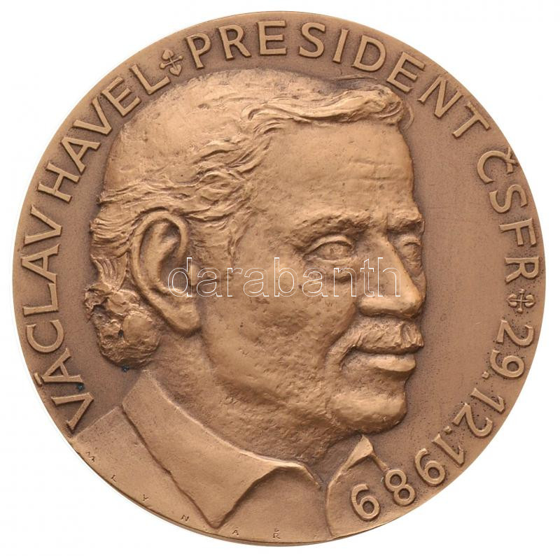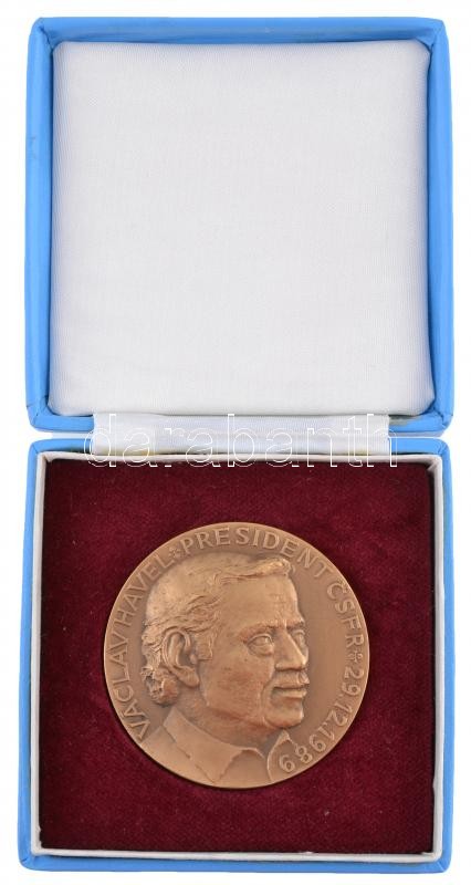 Csehszlovákia 1990. "Václav Havel Csehszlovák Szövetségi Köztársaság elnöke 1989. 12. 29. / A Művészeti Múzeum által kiadva" Br emlékérem eredeti tokban. Szign.: Mlynář (60mm) T:2