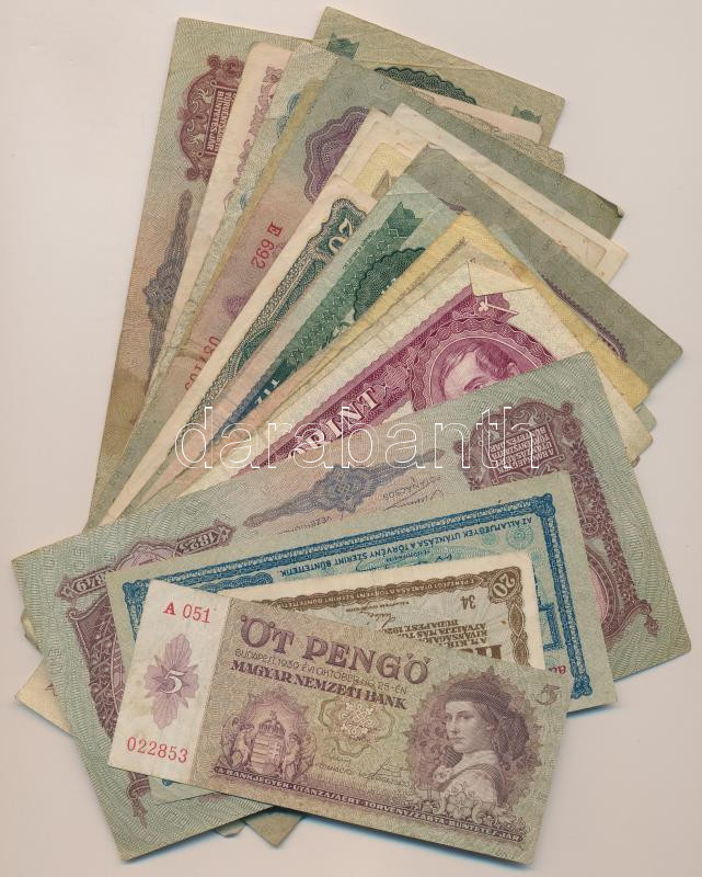 Leírás: 30db-os vegyes magyar bankjegy tétel, közte koronák, pengők és forintok T:vegyes