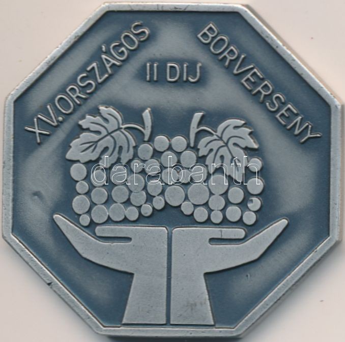 Leírás: 1976. "Szekszárd 1976 / XV. Országos Borverseny II. díj" ezüstözött Br díjérem (56x56mm) T:2