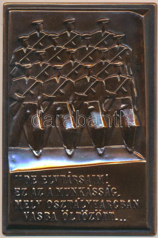 Kiss Nagy András (1930-1997) 1977. "De elvtársaim! Ez az a munkásság, mely osztályharcban vasba öltözött... / Emlékül a Munkásőrség alapító tagjának a Munkásőrség országos parancsnokától 1977. II." Br emlékplakett szignó nélkül (105x72mm) T:2