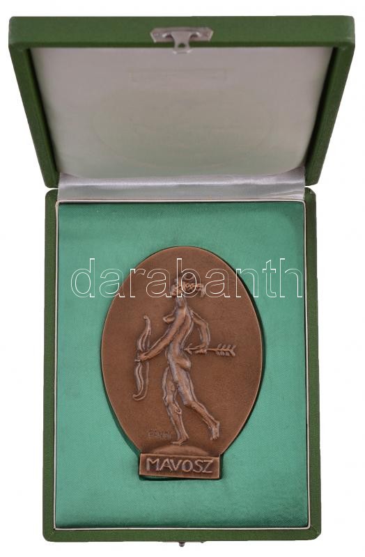 Leírás: Pándi Kiss János (1905-1981) DN "MAVOSZ (Magyar Vadászok Országos Szövetsége) Diána" Br plakett eredeti dísztokban (107,5-82mm) T:1