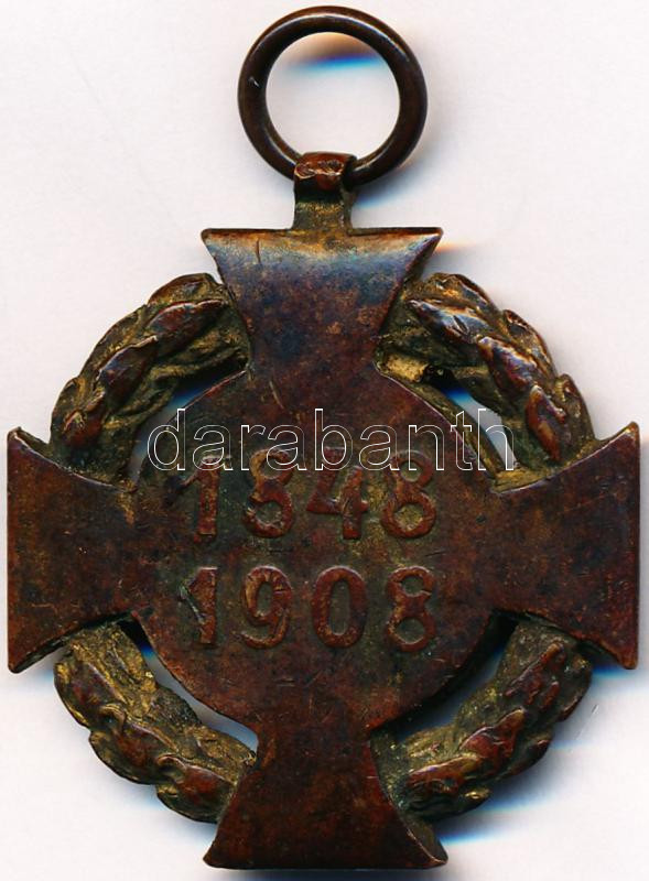 Leírás: 1908. "Polgári Jubileumi Kereszt" aranyozott Br kitüntetés mellszalag nélkül T:3 aranyozás lekopott
