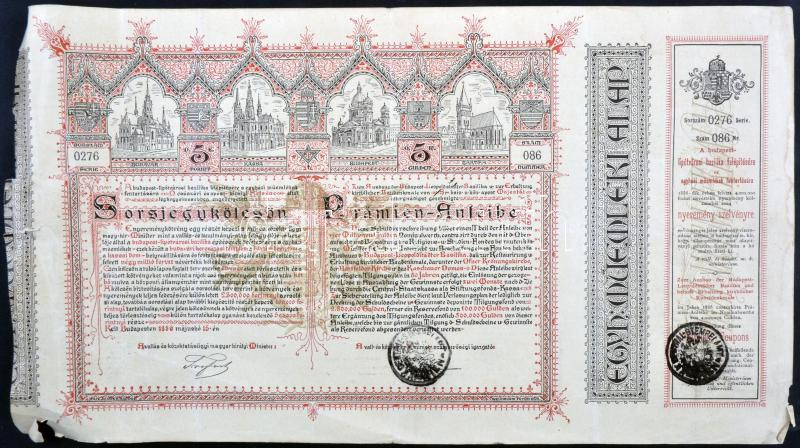 Leírás: 1886. "Egyházi Műemlék Alap Sorsjegykölcsön" 5Ft-ról a budapest-lipótvárosi bazilika kiépítésére s egyházi műemlékek fenntartására, pecséttel T:III,III- szakadt