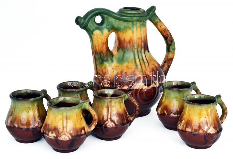 Leírás: 6 személyes rusztikus mázas kerámia boros szett / Rustic ceramic wine set