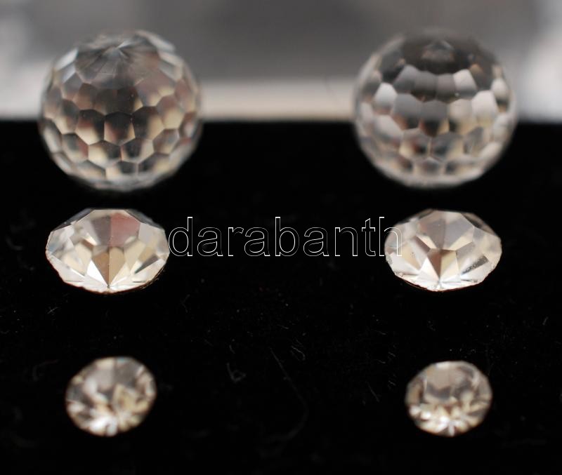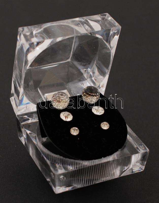 Leírás: Átlátszó kristály hatású fülbevalók, 3 pár díszdobozban