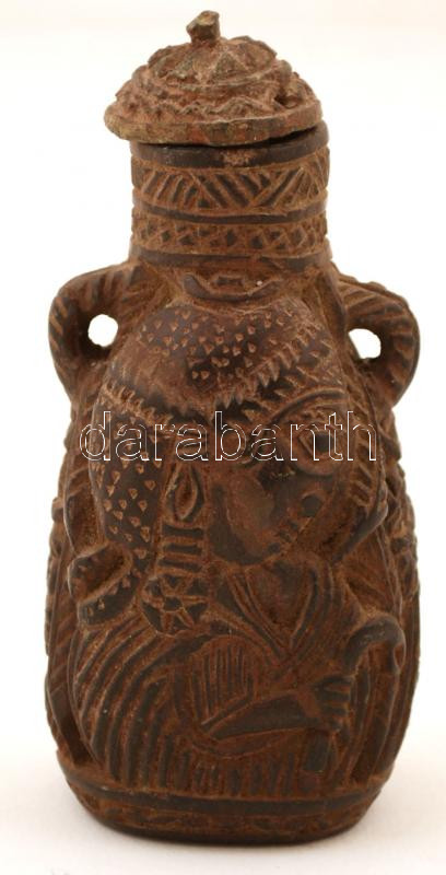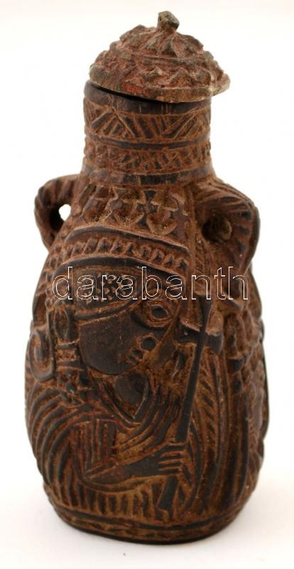 Leírás: Kézzel faragott kő dísztárgy, kupakkal, Jáva szigetéről(?), hibátlan, 13cm