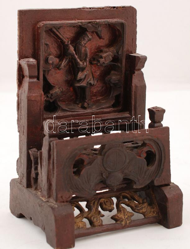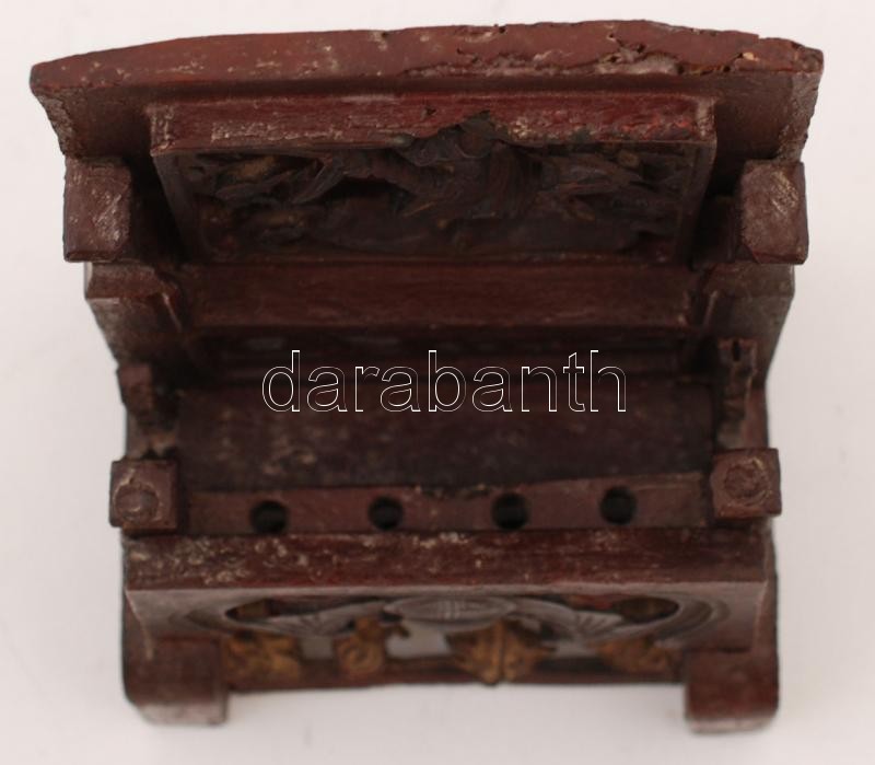 Leírás: Kínai lakkozott fa asztali ecsetállvány, 21x11x10 cm